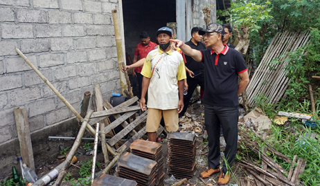 Bantuan berupa sembako, peralatan dapur, kasur, selimut dan makanan siap saji diserahkan kepada I Nyoman Sudira dan Kade Wati korban bencana longsor rumahnya tergerus aliran sungai.