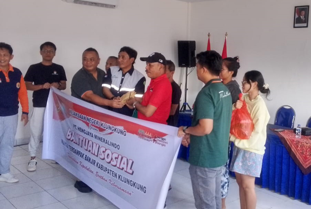 Kepedulian perusahaan Hengjaya Mineralindo disambut baik warga yang terkena bencana banjir yang terjadi di Kabupaten Klungkung Bali.