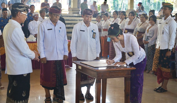 NARASIBALI.COM, SEMARAPURA – Sebanyak 161 orang menerima Surat Keputusan Bupati tentang Pengangkatan PPPK dan surat pernyataan melaksanakan tugas yang terhitung mulai tanggal 1 Oktober 2025. Penyerahan Keputusan ini turut disaksikan Wakil Bupati Klungkung, Tjokorda Gde Surya Putra, Sekda Klungkung Anak Agung Gede Lesmana, Kepala BKN, dan Kepala OPD dilingkungan Pemkab Klungkung.