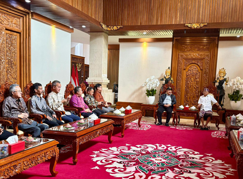NARASIBALI.COM, DENPASAR – Gubernur Bali Wayan Koster menerima kunjungan Menteri Perencanaan Pembangunan Nasional (PPN) sekaligus Kepala Badan Perencanaan Pembangunan Nasional (Bappenas) Rachmat Pambudy beserta rombongan di Jaya Sabha, Denpasar, Kamis (13/11/2025).