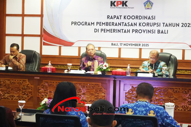 NARASIBALI.COM, DENPASAR- “Yang sering menjadi sumber mainan adalah promosi jabatan. Saya sepenuhnya sudah melakukan sistem merit disesuaikan dengan background dan pengalaman pegawai,” ujar Koster saat membuka Rapat Koordinasi Program Pemberantasan Korupsi Tahun 2025 di Pemerintah Provinsi Bali pada Senin (17/11/2025) di Inspektorat Provinsi Bali.