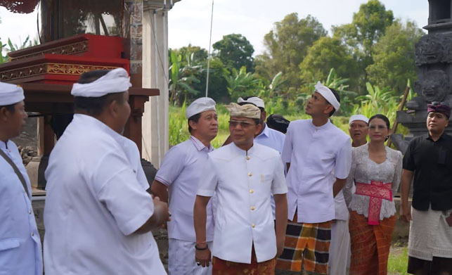 Bupati Satria Tinjau Progres Pembangunan Pura Dalem, Prajepati, Tunon dan Setra Desa Adat Tegak