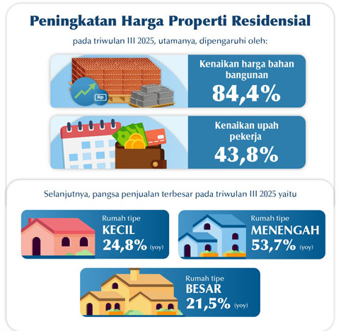 Pertumbuhan IHPR pada triwulan III 2025 didorong oleh kenaikan harga bangunan akibat meningkatnya harga faktor produksi. Mayoritas responden menyatakan bahwa kenaikan harga bahan bangunan dan upah kerja menjadi kontributor utama dalam peningkatan harga unit rumah.
