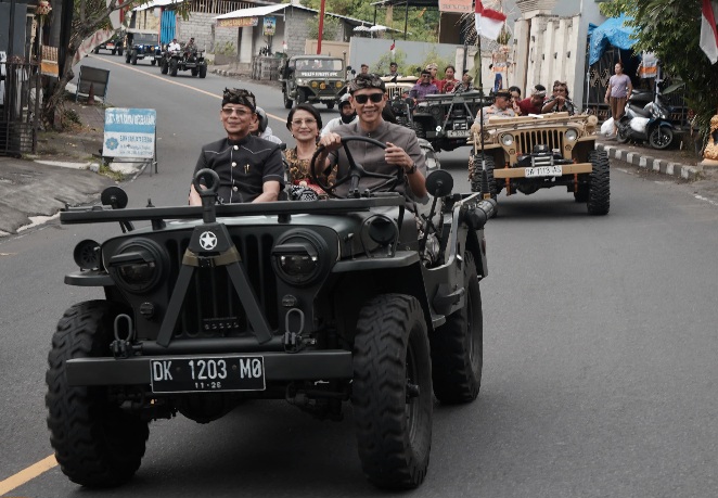 Semarakkan Festival Goa Lawah, Bupati Satria Pimpin Konvoi Puluhan Jeep Klasik