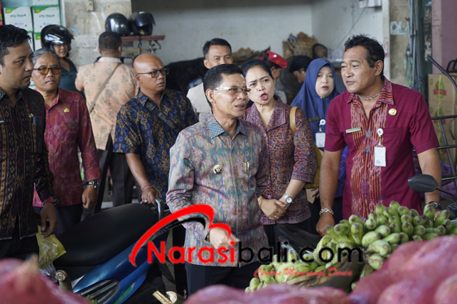 Bupati Klungkung Made Satria melakukan sidak Ketersediaan Stok dan Harga Kebutuhan Pokok di Pasar Galiran. Sumber Foto: roni/nbc