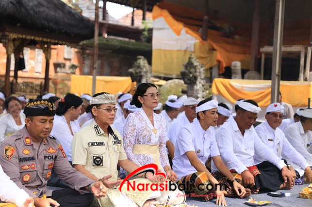 Persembahyangan bersama jajaran Organisasi Perangkat Daerah (OPD) berjalan hikmat dipuput Jero Mangku Pura setempat. Turut hadir Ketua DPRD Kabupaten Klungkung, Anak Agung Gde Anom