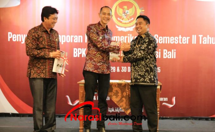 NARASIBALI.COM, SEMARAPURA – Wakil Bupati Klungkung Tjokorda Gde Surya Putra mewakili Bupati Klungkung menerima Laporan Hasil Pemeriksaan Kepatuhan atas Pengelolaan Pajak Daerah dan Retribusi Daerah Tahun 2024 sampai dengan Triwulan II Tahun 2025, di Denpasar, Senin (29/12/2025).
