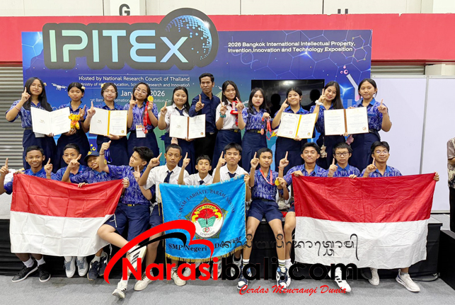 NARASIBALI.COM, DENPASAR – Setelah melalui perjuangan yang cukup melelahkan, akhirnya 21 siswa-siswi SMP Negeri 1 Denpasar yang berlaga di ajang bergengsi International Intellectual Property, Invention, Innovation and Technology Exposition (IPIITEX) berhasil menorehkan capaian Prestasi Gemilang.