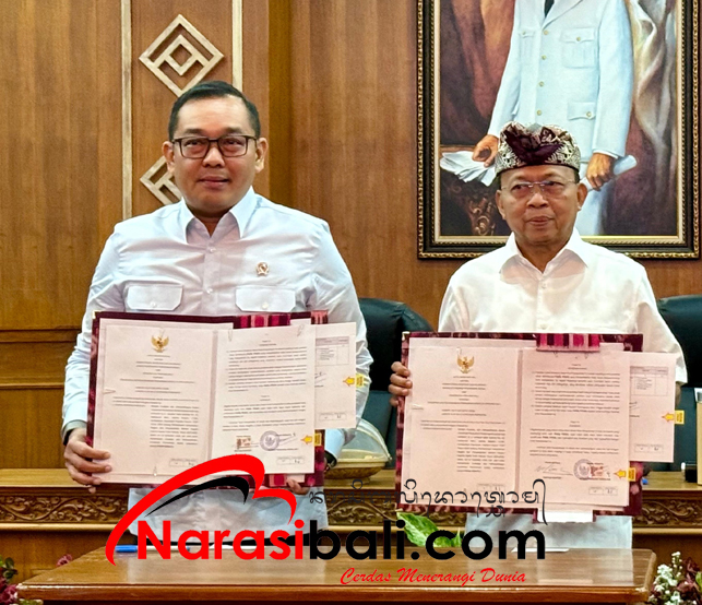NARASIBALI.COM, DENPASAR – Gubernur Bali, Wayan Koster bersama Menteri Investasi dan Hilirisasi/Kepala BKPM Republik Indonesia, yang dalam hal ini diwakilkan oleh Wakil Menteri Investasi dan Hilirisasi RI, Todotua Pasaribu melakukan Penandatanganan Nota Kesepakatan antara Kementerian Investasi dan Hilirisasi/BKPM RI dengan Pemerintah Provinsi Bali tentang Pengendalian Pelaksanaan Penanaman Modal, Kamis (Wrespati Wage, Medangkungan), 22 Januari 2026 di Gedung Kertha Sabha, Jayasabha, Denpasar.