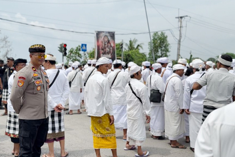 Pengamanan kegiatan ini dilaksanakan secara sinergis antara Polri dan Pecalang Desa Adat guna memberikan rasa aman dan nyaman kepada seluruh umat yang mengikuti prosesi, sekaligus memastikan kelancaran arus lalu lintas dan situasi kamtibmas tetap kondusif.