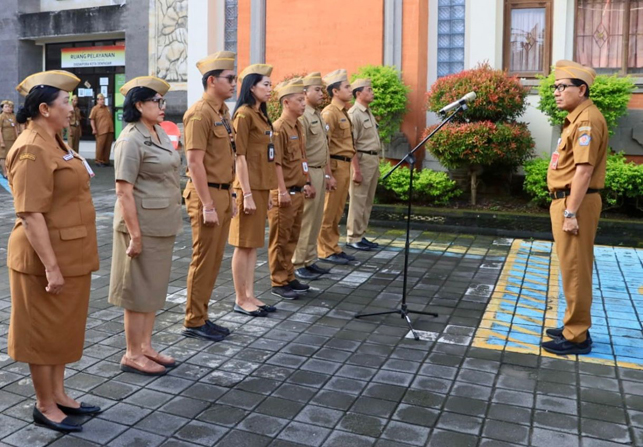 NARASIBALI.COM, DENPASAR – Sekretaris Daerah (Sekda) Kota Denpasar, I Gusti Ngurah Eddy Mulya, memimpin apel disiplin di lingkungan Dinas Pendidikan, Kepemudaan, dan Olahraga (Disdikpora) Kota Denpasar, Senin (16/3). Kegiatan yang berlangsung di halaman kantor Disdikpora tersebut diikuti jajaran pejabat struktural, tenaga pendidik, serta staf di lingkungan dinas setempat.