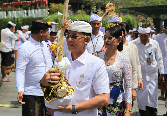“Semua komponen dan sarana upacara disucikan dalam mapepada wewalungan ini untuk digunakan saat Tawur Agung,” jelasnya.