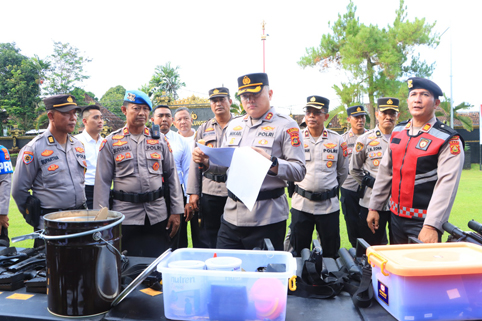 Pemeriksaan dilakukan secara mendetail, meliputi unit Armoured Water Cannon (AWC), kendaraan operasional roda enam, roda empat, hingga kendaraan bermotor roda dua. Tak hanya kendaraan, Kapolres juga mengecek kebersihan serta kelayakan senjata api (senpi) organik, peralatan Pengendalian Massa (Dalmas), hingga perlengkapan SAR (Search and Rescue).