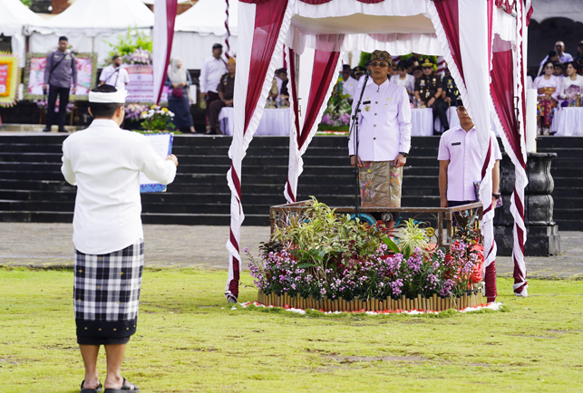 Dalam kesempatan tersebut, Bupati I Made Satria membacakan sambutan tertulis Gubernur Bali menekankan bahwa semangat ksatria saat ini bukan lagi sekadar keberanian bertempur di medan perang, melainkan kemampuan menaklukkan diri sendiri dan memberikan teladan yang baik bagi lingkungan sekitar.